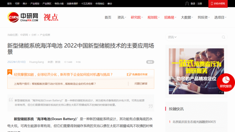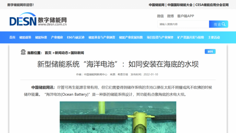 数字储能网 -国际新闻 – 新型储能系统“海洋电池”:如同安装在海底的水坝 }