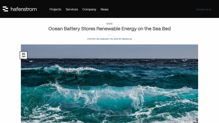 The Ocean Battery efficiently stores the excessive energy from wind farms.
