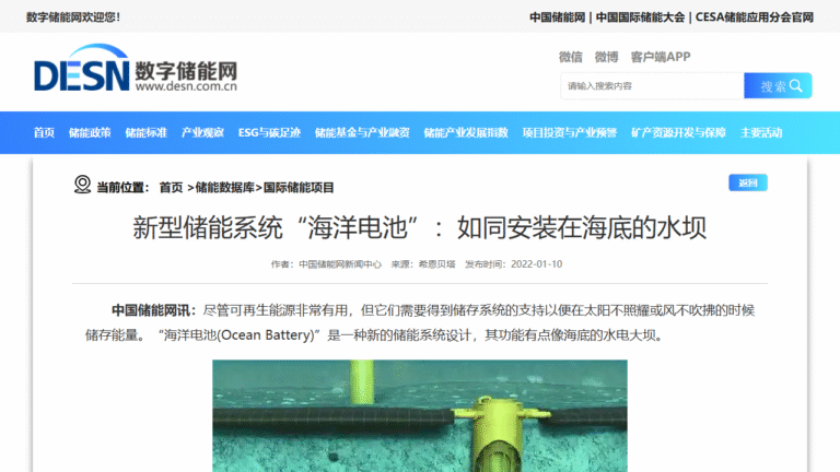 数字储能网 -国际储能项目 – 新型储能系统“海洋电池”:如同安装在海底的水坝 }