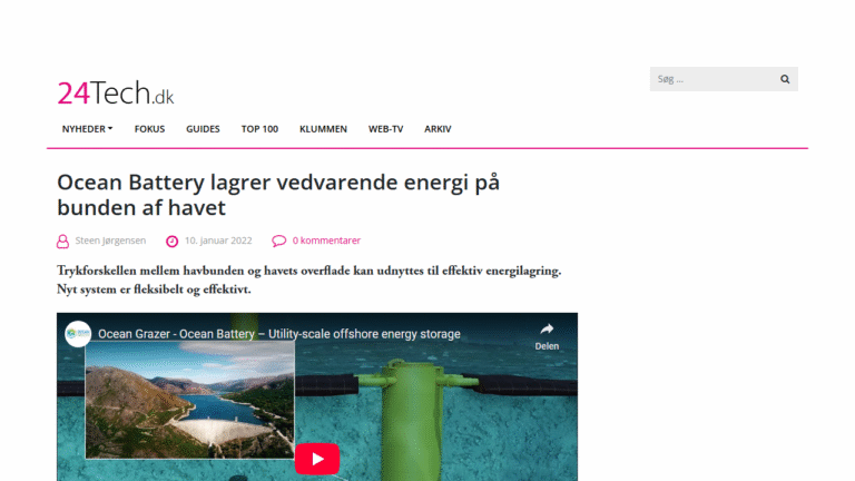 Ocean Battery lagrer vedvarende energi på bunden af havet – 24tech.dk