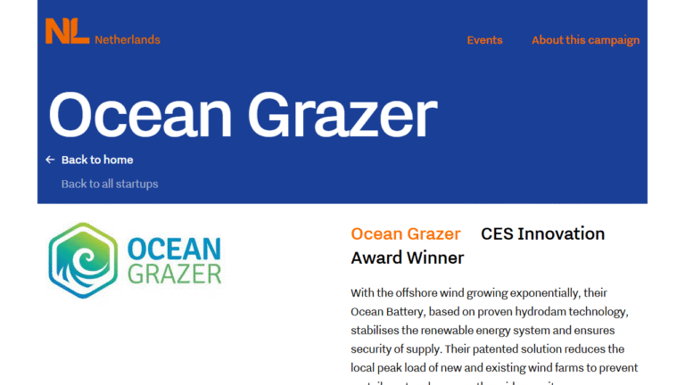 Ocean Grazer ontwikkelt een ‘batterij’ waarin grote hoeveelheden energie kunnen worden opgeslagen met behulp van waterkracht.