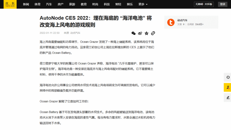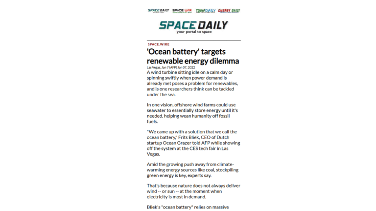 At CES 2022, Ocean Grazer launches their CES Innovation Award winning solution Ocean Battery. With this system the Dutch Water Engineers will