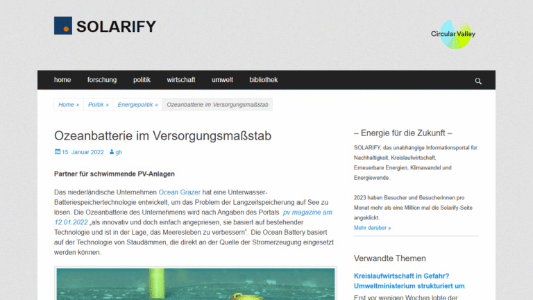 Ozeanbatterie im Versorgungsmaßstab | SOLARIFY