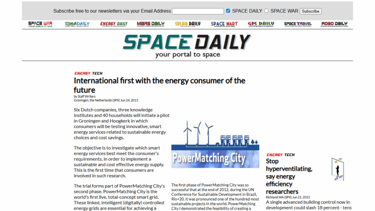 Groningen, the Netherlands (SPX) Jun 24, 2013 – Six Dutch companies, three knowledge institutes and 40 households will initiate a pilot in Groningen and…