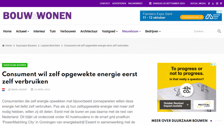 Consument wil zelf opgewekte energie eerst zelf verbruiken – bouwenwonen.net