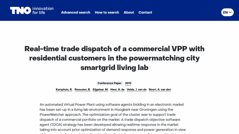 An automated Virtual Power Plant using software agents bidding in an electronic market has been set-up in a living lab environment in Hoogkerk…