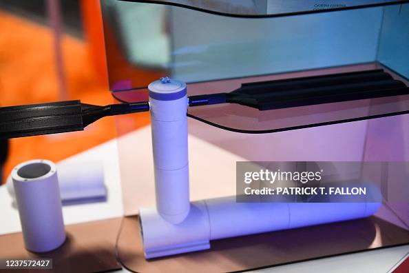 A model of the Ocean Grazer ocean battery, an underwater renewable energy storage system, is displayed during the Consumer Electronics Show on January 6,…