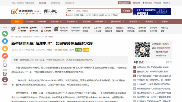 新型储能系统“海洋电池”:如同安装在海底的水坝,尽管可再生能源非常有用,但它们需要得到储存系统的支持以便在太阳不照耀或风不吹拂的时候储存能量。“海洋电池(OceanBattery)”是一种新的储能系统设计,其功能有点像海底的水电大…